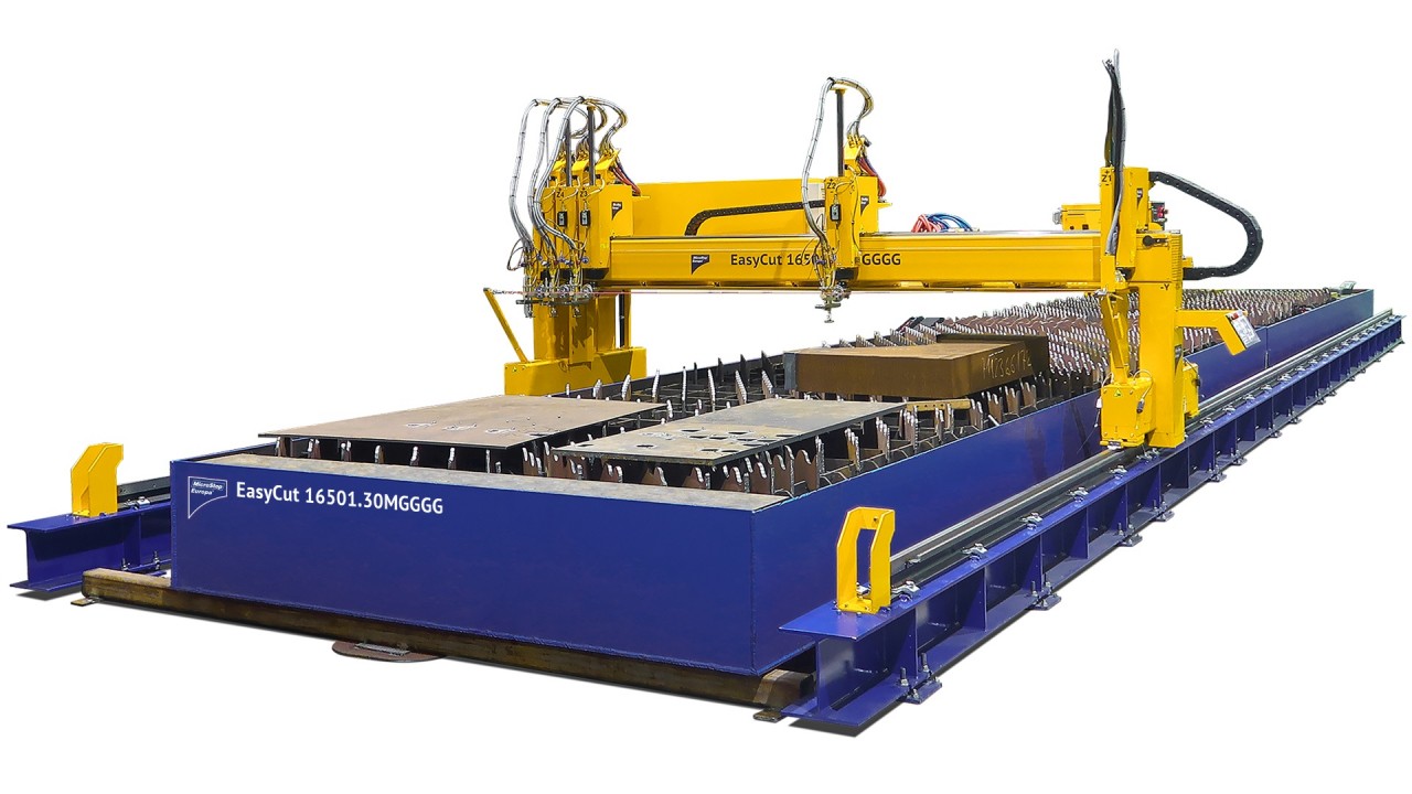 Az EasyCut egy robusztus felépítésű, de precíz CNC vágógép, amelyet több műszakos, nagy teljesítményű láng és plazmavágásra terveztek. Masszív konstrukciója lehetővé teszi akár 6 vágófejjel történő egyidejű lángvágás elvégzését. A rendszer hosszú távú stabilitását és pontosságát a kétoldalt hajtott kereszthíd, a bolygókerekes hajtóművek és a ferde fogazású fogaskerék – fogasléces hajtás biztosítják. Az akár 300 mm vastag acél vágására alkalmas lángvágó fejjel ellátott fejegység mellett a gép a finomsugaras plazma technológia alkalmazására is képes.